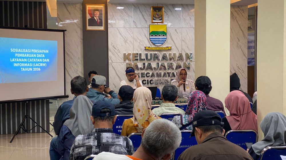 Pemerintah Kecamatan Cicendo terus memperkuat sistem pendataan kewilayahan melalui kegiatan Sosialisasi Persiapan Pembaruan Data Layanan Catatan dan Informasi RW (LACI RW) Tahun 2026, yang di hadiri oleh para Ketua RW dan perwakilan pengurus RT se-Kelurahan Pajajaran. Kegiatan digelar pada Rabu, 15 April 2026 di Aula Kelurahan Pajajaran.
