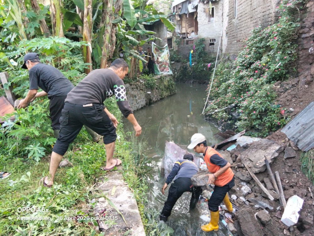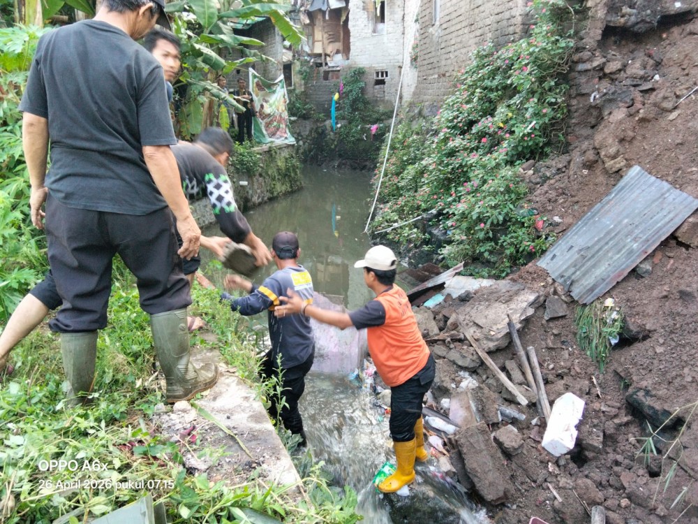 Respon cepat ditunjukkan jajaran pemerintah wilayah Kecamatan Cicendo dalam menangani kejadian longsor kirmir yang terjadi di RT 01 RW 08, Kelurahan Pajajaran, Kota Bandung, pada Minggu (26/04/2026).